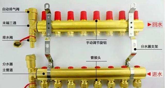 分集水器由分水器和集水器組成,分水器接供水,集水器接回水,每對接口之間用整根水管相連,就是一個回路。