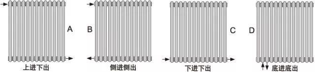 上進(jìn)下出最有利于水循環(huán),但是管道鋪設(shè)上可能會有礙于美觀;上進(jìn)下出、低進(jìn)低出管道鋪設(shè)都比較美觀,但是不利于水循環(huán),暖氣片高度不宜過高。